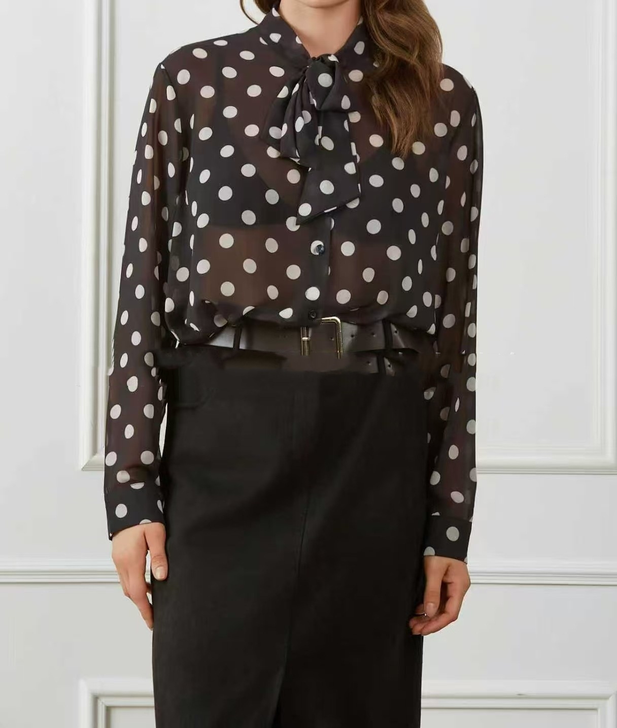 Polka-dot Shirt With Long Sleeves And A Bow Detail